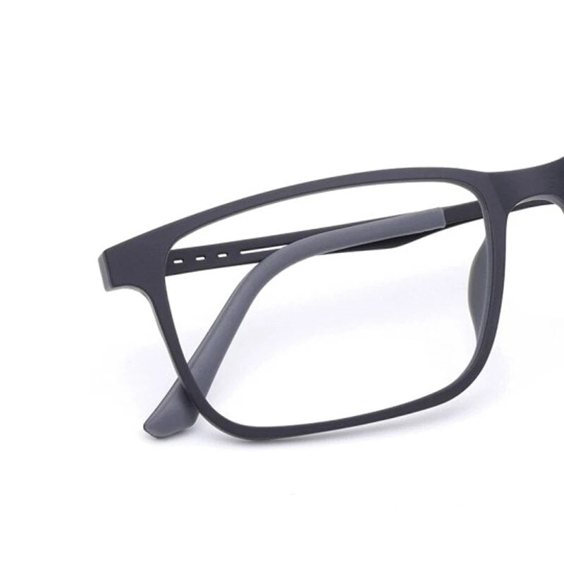 A fusão perfeita de materiais. Com frente em TR90 e hastes em Titânio, este modelo oferece durabilidade excepcional com leveza absoluta para o uso diário.
