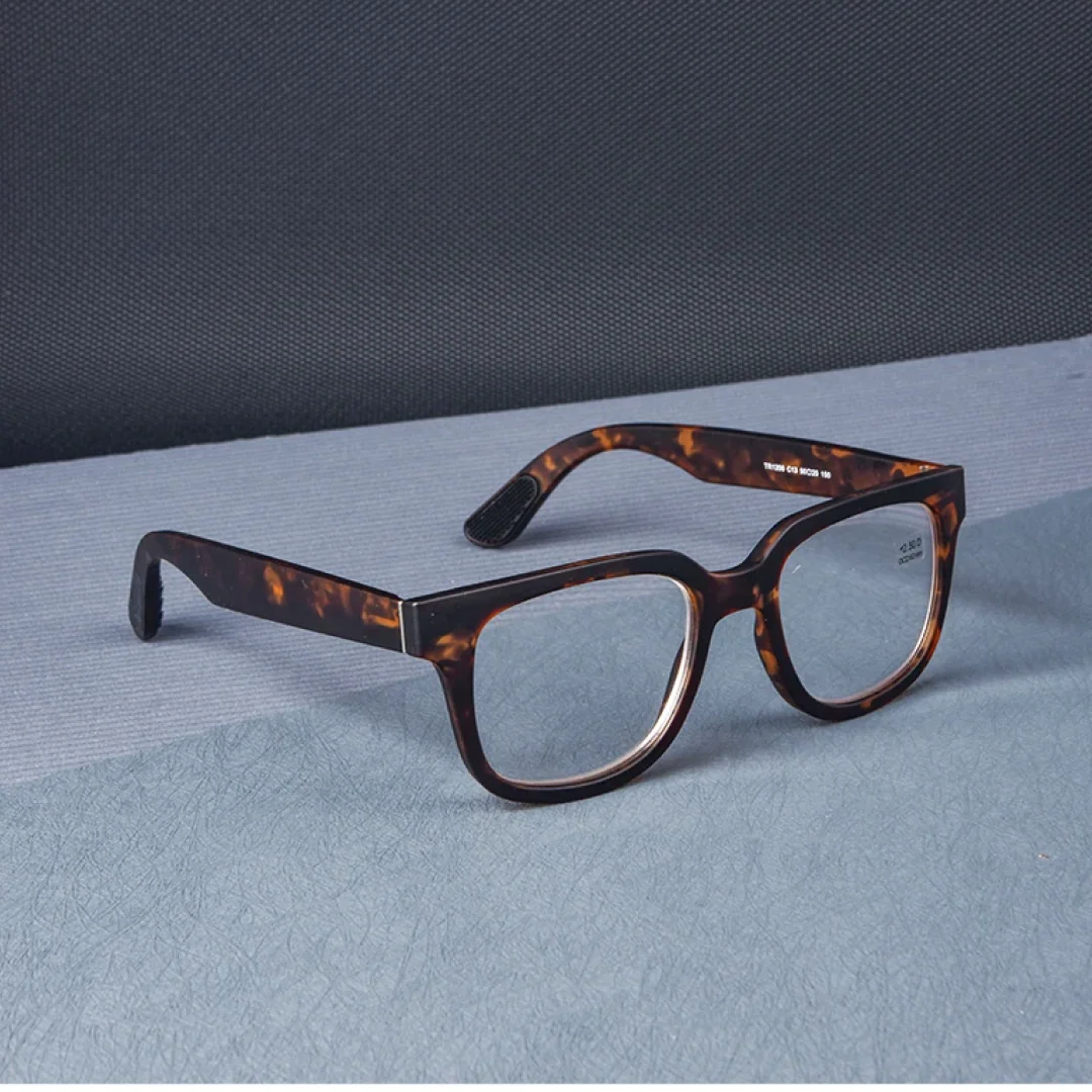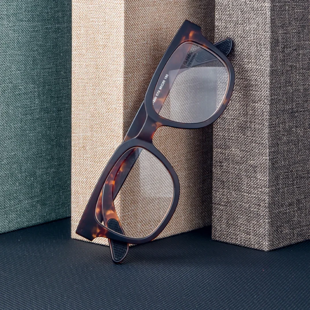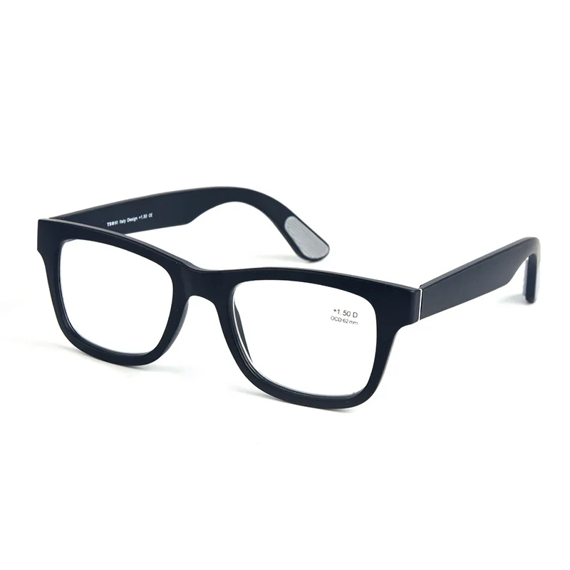 Disponível nos graus +1.00 a +4.00 e nas cores Tartaruga, Preto e Vermelho.